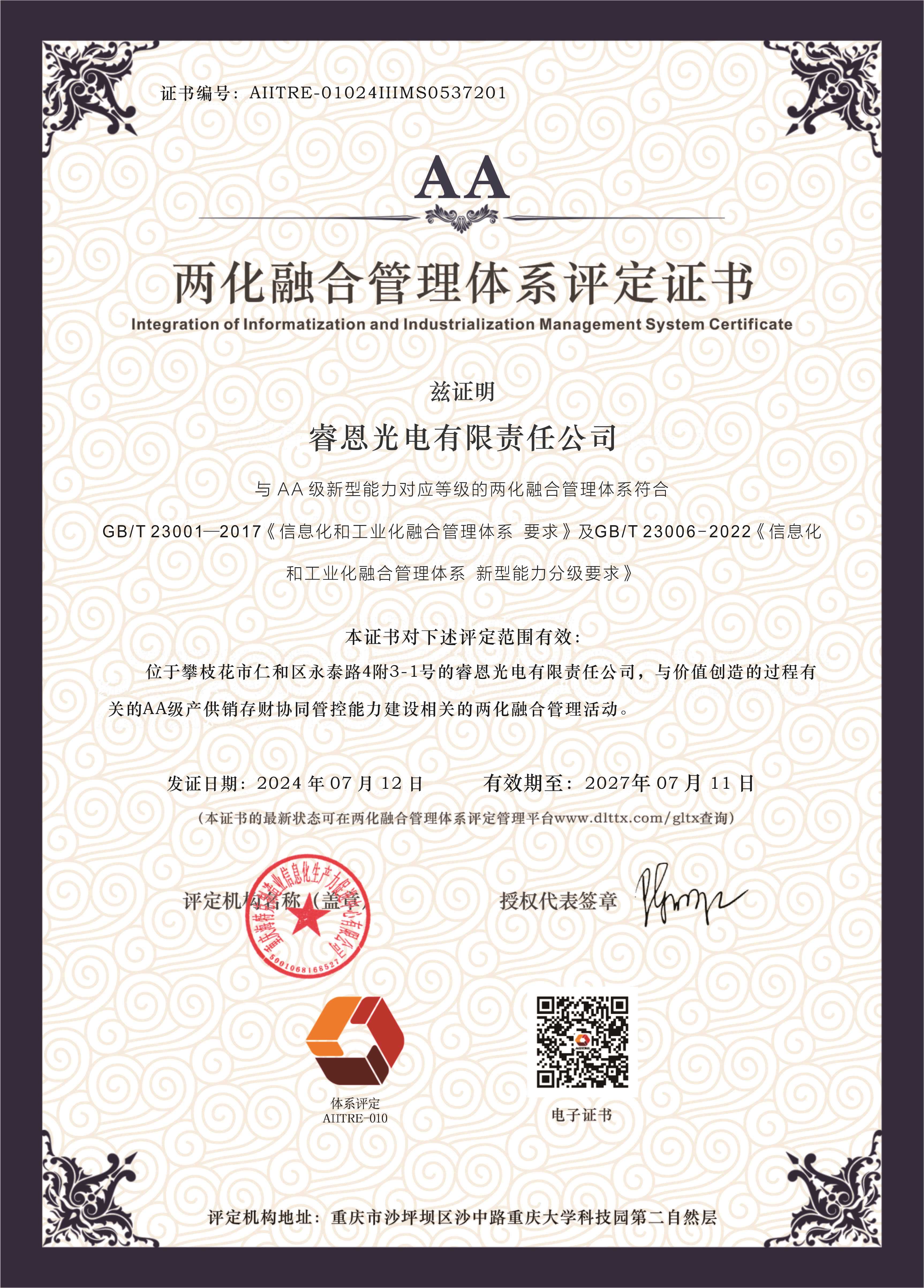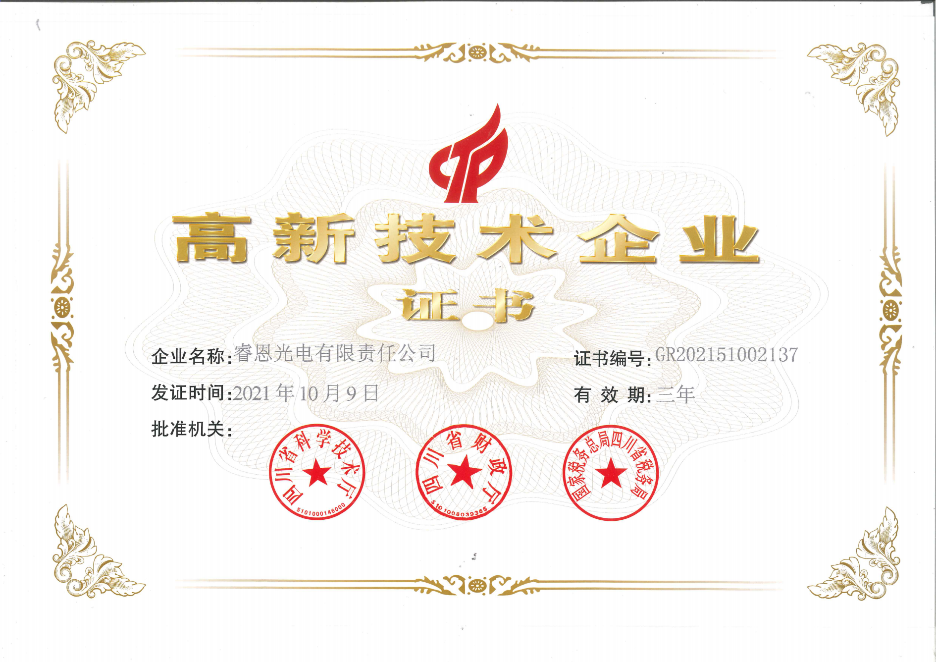 目前,公司已通过国家专精特新小巨人企业、国家高新技术企业、省级专精特新企业、省级企业技术中心、科技型中小企业认证,已入选四川省上市后备企业资源库企业名单,已通过ISO9001质量管理体系、ISO14001环境管理体系、QC080000有害物质过程管理体系和知识产权管理体系认证,引领两项团体标准的起草、现已立项省科技厅重点项目5个。