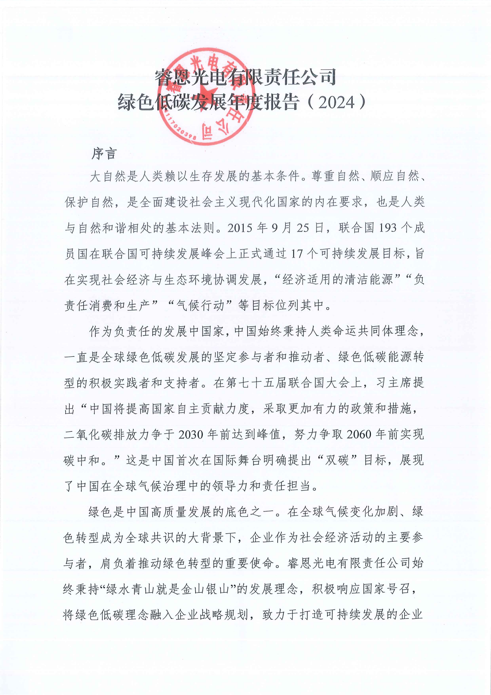 睿恩光电有限责任公司 绿色低碳发展年度报告(2024)